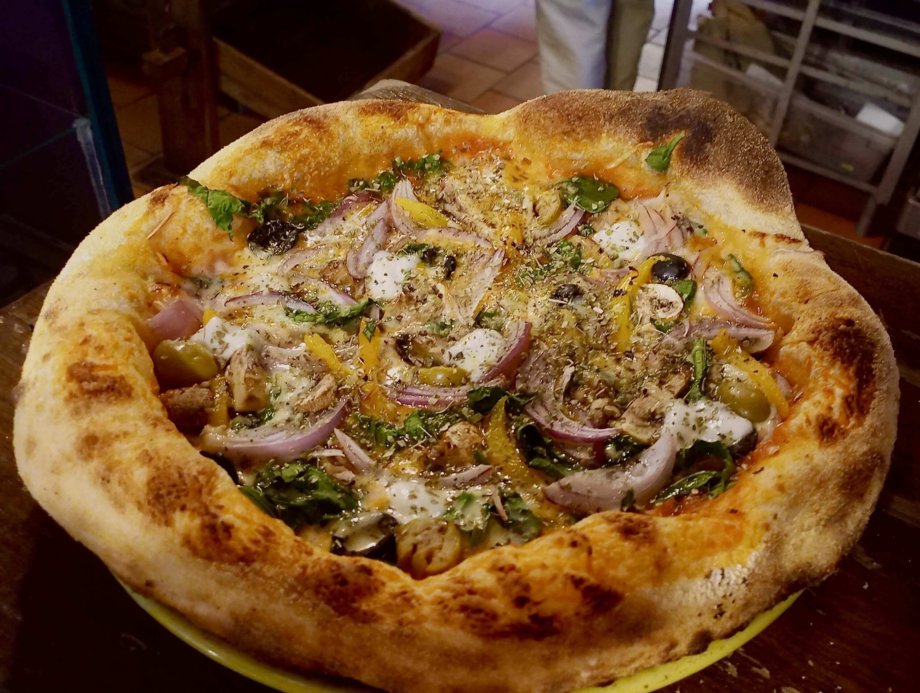 $39.5Tomate, Espinaca, Champiñón, Cebolla, Aceitunas, Parmesano Messana (10m), Búfala, Mozzarella, Pimienta.
