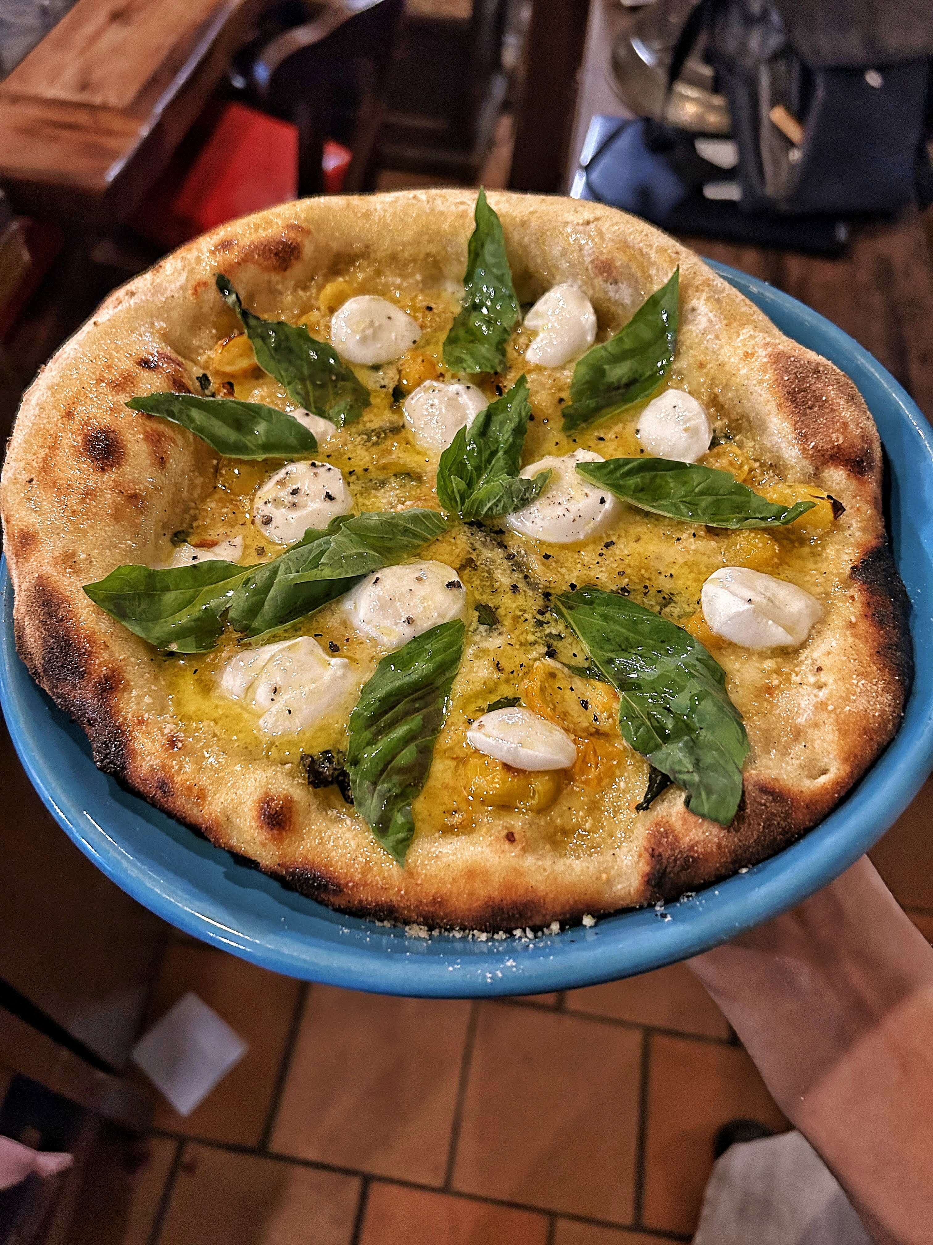 $39.5Datterini Caramella (Tomate), 100% Búfala, Albahaca, Parmesano de Búfala fino cottura, AOVE.